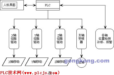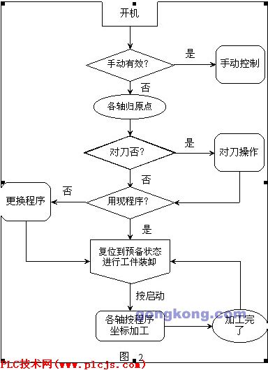 引言:在新开发的产品中有一个型号为Q7的长条铝基台,要在上面加工两个φ3.7×1.65的平底盲孔,由于要求精度高,批量大,故无法用传统的钻模在钻床上加工,也很难在传统铣床上面加工,即使能加工效率也很低,并且设备损耗和电力损耗也很大。此工件的加工有着非常广泛的代表性,生产的很多产品有着类似的要求,为此,我们设计制做了一台用于此类产品加工的设备——通用型数控钻铣床。 一、系统概述 系统构成如图1所示,控制部分采用PLC,并配以人机界面进行程序参数修改、设定, ![]() 以及运行状态显示监控,可编程设置人机界面的内容。三轴均为全数字交流伺服系统,各轴伺服电机通过连轴器带动滚珠丝杠,以移动配有直线导轨的工作台和主轴铣头,其定位准确,速度快。主轴铣头由变频器控制,根据刀具及工件和进给量,来设置主轴合理的转速,并在程序中设定它的启动停止。各轴均设二端极限传感器和原点传感器,冷却和润滑也都有异常检测,在报警灯和人机界面处显示报警信息。为便于调试和检修,各项操作均设手动功能,如手动各轴快慢移动、主轴高低速旋转、切削液及润滑开关等。此机床整体虽为半闭环控制,只要选件、装配、程序编制及操作合理,精度和稳定性还是能满足使用要求的。 二、硬件配置 PLC选用永宏的FBS-40MCT,该型机具有较高的性价比,体积小,功能强,24点输入,其中有16点高速计数器,频率可达120K,16点输出,其中有4轴步进或伺服输出整合在里面,输出频率可达120K,使应用起来非常方便,接线简捷。编程软件WinProladder有梯形图大师之称,易学易用且功能强大,编辑、监视、除错等操作非常顺手,按键、鼠标并用及在线即时指令功能查询与操作指引,使编辑、输入效率倍增。 接点分配:取各轴伺服电机的Z相信号作原点开关,要分接在几个高速输入点上,用中断进行机床原点复归,其余限位开关、操作开关、液位检知等常规接点可按顺序依次接入。X、Y、Z三轴伺服电机连在前3轴伺服输出点,主轴高低速、冷却、报警等接在其余输出点上。 X、Y、Z3轴伺服系统均选用相同的,和利时的ES系列全数字交流伺服驱动器0040E-CBCEE-02,和60系列小惯量的伺服电机60CB040C-2DE6E。该伺服系统功能比较完善,如能耗制动、电子齿轮、自动加减速等,具备多种脉冲串输入,保护功能也比较完备,有欠压、过压、过流、过载、堵转、失速、位置超差、编码器异常等。在此设备中按集电极开路驱动方式连接至PLC,最高脉冲输入频率为200K,伺服ON、Z相信号等也做相应连接。 变频器选用富凌的DZB70B0015L2A,规格为单相1500W,400Hz,有多步速供编辑使用。由于正常使用时不频繁变速,故速度调节设定不引出,只在变频器操作面板上调节,设定两个速度,高速用于加工,低速用于对刀。调节相关参数与主轴匹配,如基频、基压、运行频率上限、载频等,并改动相应跳线。 主轴没有采用传统方式,而是根据加工需要,采用了雕刻机用的电主轴,安阳莱必泰的ADX80-24Z/1型,其体积小、噪音低,直径只有80mm,这样使整个主轴箱便于整体密封,可有效地防止加工中的碎屑飞溅到Z轴的丝杠和导轨上造成损害,也使主轴箱外表显得美观。它的最高转速为24000转/分,使正常工作转速6000-14000转有一个合适的余量范围。 人机界面选用人机电子的通用可编程文本显示器MD204L,它可以以文字或指示灯等形式监视、修改PLC内部寄存器或继电器的数值及状态。 三、软件设计 机床工作的流程图如图2所示,开机后先检测手动开关是否有效,若手动开关有效 ![]() 即利用各手动控制开关执行手动操作的项目。若手动开关无效,则启动原点复归程序,各轴进行机床原点复归,先回Z轴再回其它两轴,当所有轴都原点复归成功后才能进行到下一步。若刀具和工装夹具、工件程序均没有变动,可复位到加工预备状态而不进行对刀,若需对刀,则打开对刀开关启动对刀程序,3轴分别对刀,即找工件原点,利用手动各轴移动开关快慢移动各轴,使工件的三个面分别碰触低速旋转的刀具,刚好碰上为止。对好后,按对刀OK确认,再输入刀补,经过程序处理,即形成工件原点也就是编程0点,编程时根据此0点按照图纸计算刀具路径,可使操作者思路清晰,编辑运算简单。操作者编辑的是用户程序,可以编辑刀具轨迹,就是各轴移动坐标,还有移动速度、循环加工时的循环次数等。编好程序后或使用当前程序时,即复位到预备状态:各轴移动到初始位—一个合适的位置,装卸工件方便、不易碰触刀具时,装上工件,按启动即可开始加工,主轴运转,冷却液开,各轴按程序设定坐标移动。当加工结束时,机床复位,即各轴又移动到初始位,主轴停,冷却关,这时可卸下工件,完成加工过程。 本新闻共2页,当前在第1页1 2