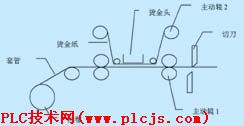 烫金纸定长传送过程实现:PLC的Y0发出步进脉冲,UPK569AJW步进机构带动主动辊2实现定长传送。烫金纸长度、传送速度设定全部在人机介面完成。