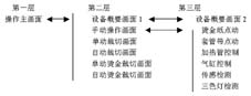 人机界面选用触摸屏技术。触摸屏显示共有14个显示画面,画面显示层次以及相应画面进入、退出的触摸键名称如下所示: