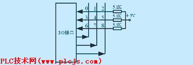 如图2所示,为PLC的DC输入模块,其中,K1-输入开关;M-公共端;I0.0-输入点;R1、R2的典型值为5.6K、1K。