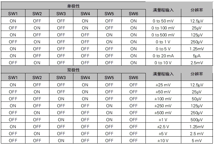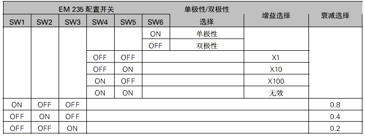 4、模拟模块的量程 使用DIP开关组态输入通道 配置EM231