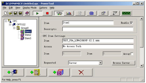 Ifix没有LCM4的驱动,因此其和OPTO 22设备的连接需要通过OPC或者DDE来进行连接,此文章主要是对OPC连接方法进行说明。 Ifix提供OPC Server和OPC Client组件,两个组件用户可任意安装其中的一个,在Ifix的OPC Server组件中包含了OPC Client。安装完毕后启动ifix然后加载OPC Client接口。 1、Opto22侧配置过程 我们首先进行OptoCtrl的配置,做好工程方案,然后下载到LCM4中。 首先在Opto Server Administrator中配置好方案,然后启动Opto Server, 2、Ifix2.6侧配置过程 在安装完毕Ifix自带的OPC Client后,需要在Ifix中的系统配置项进行OPC接口加载。启动Ifix后进入系统配置窗口,如下: ![]() 加载OPC 接口 后,在ifix开发状态下启动OPC Client进行OPC配置。配置画面如下: ![]() 点击连接后进入OPC Client 进行数据配置 ![]() 在OPC Item Settings中的Item项的配置必须按照“控制器[扫描组]:数据类型.变量名”进行添加和修改,在添加和修改工作进行前,必须先取消画面上的Enable选项。 点击确定后,完成了一个Item的配置,然后根据需要可以配置其它所有需要和ifix交换数据的Item项。 完成所有OPC配置后,在Ifix的实时数据库中进行配置,完成Opto22 LCM4到Ifix数据库的整个数据链路配置。 在数据库变量的连接: ![]() IO地址配置的时候注意按照格式:OPC服务器:扫描组:ITEM 然后在上位选择连接变量运行即可。 在整个OPC配置过程中,用户只需要通过鼠标点击就能完成所有的配置工作,能极大的提高配置的效率和准确性。 |