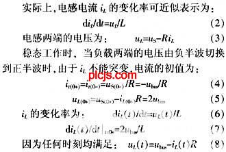 说明在t(0+)时刻,电流变化率,即由负变正的上升率最大,uL也最大,随着负向电流的逐渐减小,电阻两端的负电压降绝对值逐渐降低,由式(8)可知,uL也逐渐减小,从而按式(6),电流的变化率降低,并且在uL=ubus电阻电压降为零时刻时,iL上升为零,而后电流变为正,此后电阻两端的电压uR反向变为正电压,uL继续降低,iL的上升率也继续降低。直到uR=ubus时刻,uL=0,iL才不再变化,从而达到正向稳态,稳态电流可表示为: