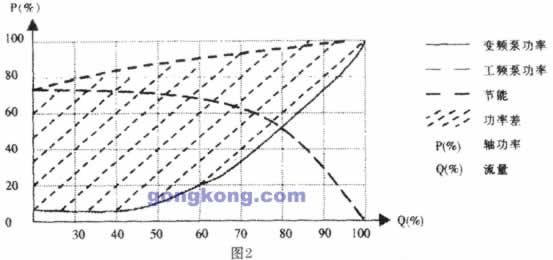 摘要: 本文介绍了利用可编程控制器、变频器改造宾馆中央空调冷冻泵、冷却泵控制系统,实现了技术升级、确保设备低耗运行,并提高了电气控制系统运行的可靠性。 关键词: 宾馆 中央空调 控制系统 PLC 变频器 改造 1 引言 汽包水位 给水流量 蒸汽流量 三冲量 自动控制系统 燃烧过程控制在宾馆里,中央空调是不可决少的,耗电非常大,空调主要是用来实现室内的恒温,中央空调主要由制冷机、冷却水循环系统、风机盘管系统、风机和冷却塔等组成。中央空调工作原理图如图1所示。通常冷冻水泵的容量是按最高温度、满住率,并在此基础上留有10-20%的余量设计,在一年四季中,水泵系统长期在固定的最大水流量工作,由于季节、昼夜及住房率变化大,空调实际的热负载在绝大部分时间内远比设计负载低。与决定水泵流量和压力的最大设计负载(负荷率100%)相比,一年中负荷率在50%以下的运行时间将近一半,一般冷冻水设计温度为5---7℃,而事实上在全年决大部分时间冷冻水的温度仅为2---4℃,即水泵却是全功率运行,增加了管道能量损失,浪费了水泵运行的输送能量。这就存在能量的无效使用,而通过变频调速技术就能实现自动调节流量并显著节能的效果,用PLC改造传统电气控制系统的则使运行可靠性大大加强。 ![]() 2 变频调速功能 2.1 变频器节能原理: 变频器是输出频率可改变的交流电力拖动设备。变频器调速的主要工作原理是将供给 电机定子的三相交流工频电经大功率整流元件整流,变成直流,再将直流电用正弦波脉宽调节技术逆变为频率可调、幅度也随之改变的三相交流电,以此为电源再供给电机使用。 由水泵的工作原理可知:风机、水泵特性:Q∝n H∝n2 P∝n3 即流量与转速成正比,压力与转速平方成正比,轴功率与转速的立方成正比。 根据公式:转速 ![]() 其中f为电源频率,我国工频为50HZ,P为极对数,S为转差率,那么调节电动机电源频率就可调节电动机转速,调节电机转速也就是调节它的负载转速,那么,根据风机、水泵特性可知,调节风机水泵的转速可以达到调节流(风)量的目的,同时,显著调节轴功率。通过在水泵加装变频器,,则可实现自动调节控制,可使系统工作平缓稳定。并通过变频节能收回投资。如图2所示,图中阴影部分为同一台水泵的工频运行状态与变频运行状态在随着流量变化所耗的功率差。因此,随热负载而改变水量的变流量空调水系统显示了巨大的优越性。 ![]() 2.2 变频技术应用: 中央空调系统采用变频调速技术,电机可在很宽范围内平滑调速,可将所有节流阀去掉,使管道畅通,可免去节流损耗。通过改变电机转速而改变水的流速,从而改变水流量,达 到制冷机正常工作要求和平衡热负荷所需冷量要求,达到节能目的。采用变频调速技术的关键是电机转速的可调和可控。电机的变频调速系统是由PLC控制器进行切换和控制的。 ![]() 3 PLC控制变频调速系统工作原理: 3.1 采用性能可靠的松下系列PLC为控制核心,所有输入信号起停,保护都通过光电隔离输入到PLC的输入口,利用专用编程软件,根据控制要求对PLC进行梯形图编程,PLC输出控制变频器的起停。采用PLC控制后,可取消全部时间继电器和中间继电器,所有逻辑控制通过梯形图软编程,在不用改变控制线路的情况下,可随时按控制要求修改程序,实现新的控制方案,灵活性相当高;并具有强大的通讯接口,可与上位电脑相连,,实现远程监控,为将来联网控制留 有接口,具有良好的扩展性,能与其他控制系统协调工作。变频器调速控制电路简单, 克服传统线路易出故障的缺点,降低了事故发生。 本新闻共2页,当前在第1页1 2