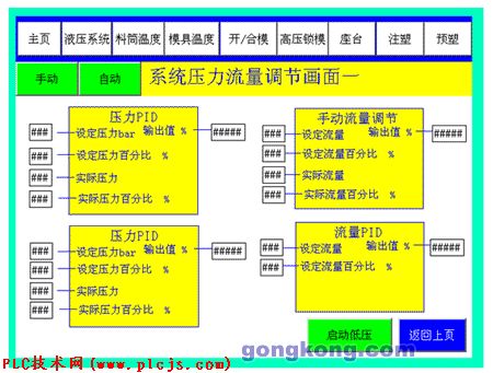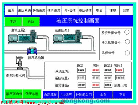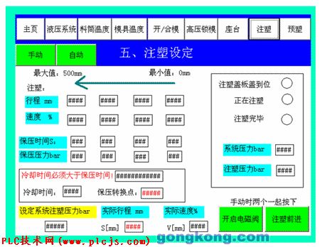 2005年3月我公司和北京兰诺克移动垃圾箱有限公司签定了关于“移动垃圾箱注塑机”改造项目合同,帮助该公司进行旧塑机进行电气改造,目前,该项目已经基本完成,设备已经顺利运行。 一、 项目概述 北京兰诺克移动垃圾箱有限是一家中外合资企业,是一家专业塑料制品生产厂家,拥有四台大型塑料注塑机,生产目前生活小区的移动垃圾箱。有240L和120L两种,该注塑机是德国BATTENFELD(巴尼非尔德)的大型注塑设备,本次改造的是一台注塑压力为8000N、注塑重量为5400克的UNILOG9000C型机器。属于全液压的数控机床产品。 该系统采用了PLC和计算机控制系统,原PLC及计算机采用了德国SCHLEICHER(施莱西尔)的产品,过程测量设备为德国BALLUF(巴鲁夫)超声波电子位移传感器。 原系统控制点数统计情况如下: 数字量输入:82点 数字量输出:46点 模拟量输入:23点 模拟量输出:8点 由于该设备是1998年引进,工作至今,电气设备老化严重,控制模块和操作屏经常出现故障,设备无法工作。我们准备选用西门子S7-300 CPU 315-2和TP270-10来替换原控制系统。 二、 控制特点 该设备分开合模、座台、注塑、预塑及15段温度控制,有两台液压泵给系统提供系统压力,通过调节器同时向系统提供高压和低压两种压力,并且各系统压力和流量均可设定和调节,设备运行速度和时间需要设定调节,控制器能存储多套参数。在TP270-10上的设定参数多达200多个,经过三个月的施工调试,现已正常生产,每天能生产产品达700多个。 三、触摸屏功能 1、 设备启停 2、 系统压力、流量设定 3、 开/合模位置及速度设定 4、 座台位置及速度设定 5、 注塑/预塑压力、速度设定 6、保压压力及保压时间设定 7、 系统PID调节参数设定 8、 配方功能 9、 系统报警功能 10、 模具/料筒温度设定及温度趋势显示 11、设备工艺流程显示 四、系统框图 ![]() 五、触摸屏画面显示 ![]() ![]() ![]() ![]() |