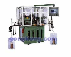 项目简介 全自动转子绕线机是专用于生产钩型整流子转子的设备,适用于中、细线径转子的高速绕线。用于生产吸尘器电机转子、电动工具转子以及各类钩型整流子的串激电机转子。 此类全自动转子绕线机原来采用人机界面和PLC/CNC控制3轴伺服电机。工作顺序如下:利用气缸可使绕线护头分开,顶工件系统将工件顶入夹头内,护头护住转子,进行工件初定位,然后夹头夹紧工件,夹线系统夹线,飞叉通过CNC控制进行挂线、剪线系统剪线、飞叉通过伺服电机驱动绕线,分度、挂线,护线系统配合动作自动完成挂线,然后绕下一槽,最后完成或绕线后,护线、夹线、剪线系统配合动作完成剪线、夹线动作。 可见绕线的起停加速度直接关系到转子的生产速度和绕线质量。同时对众多的气动组件的快速时序控制也是提高生产效率的关键,所以传统的CNC系统和普通的PLC并不能很好地适合于此类绕线机的控制工作,进一步提升绕线速度的空间有限,所以生产厂商开始寻求更好的解决方案。 ![]() SIGMATEK的解决方案 原有的系统人机界面需要与PLC/CNC进行通讯,因而便存在了信号传输延时的问题,直接影响了生产效率。 全新的系统同过选用Sigmatek的智能化控制终端,内部直接集成了控制用的CPU,从而将人机界面和PLC/CNC合而为一,不存在通讯延时的问题,生产效率高大幅度提高。同时还有效减少电气柜内的空间占用,使整机体积大大减小。 ![]() Sigmatek系统通过发挥高级编程语言的独特优势,对每轴交流伺服电机的驱动进行精确优化,不仅能够对伺服电机的位置和速度进行精确控制,同时还对扭矩进行实时监测。通过对绕线过程中的伺服电机起停进行变加速度控制,从而能够大大缩短了飞叉的起停加速时间,定位速度更快,控制精度高。在保证高性能的同时,在高可靠性方面也作了强化。Sigamtek控制终端自身便能通过伺服系统进行张力的调整,保证绕线过程所需的恒定张力,再加上送线部分的张力控制器,便可轻松适应各种不同线径的绕线需要。 该系统控制终端的控制面板上有薄膜轻压按键和数据轮,操作极为方便。5.7的LCD彩色显示屏有背光照明。用户可以通过屏幕上的全中文菜单、人机对话编程界面进行参数化输入编程,图形实时显示工况,可任意对绕线参数进行编辑、修改、储存和加密等多种处理,可方便的绕制不同型号的转子,并可储存全部绕制参数。 借助于以上的优势,装备全新控制系统的绕线机绕制一个右图所示的转子用时不超过35秒。 ![]() SIGEMTEK应用优点 1、 速度: 飞叉额定绕线转速可以达到2500rpm以上; 2、 加速度:飞叉、分度加速度均可达到200KHz以上; 3、 精度: 绕线飞叉电机0.2度、分度电机0.01度 |