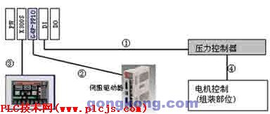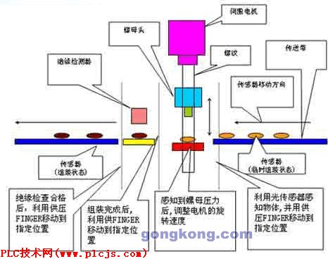 1. 概要: 本系统采用高级位置控制功能APM(1轴)实现螺母组装。 -使用领域:单个机器 -产品种类:K300S(G4F-PP10),HMI机器 2.系统构成 ![]() 3.系统构成 ![]() 1) 输入:压力信号(触点) 2) 输入:Z相信号(触点)/输出:方向脉冲(正方向,反方向) 3) 使用K3P-07AS的CPU通讯正方向/触摸屏(TOP5.5’’) 4) 压力信号/组装完成信号 4.主要功能 动作区分: -启动信号输入时电机下降(高速) -下降碰到传感器时,电机速度改变(中速) -利用负载单元的输入信号(1次压力感知),速度减少(低速) -利用负载单元的输入信号(2次压力感知)电机停止。 -利用负载单元的输入信号(3次压力感知)电机低速上升。 -利用负载单元的输入信号(4次压力感知),电机停止。 -组装设备完成信号发出后电机高速上升。 -高速上升时利用移动轴的上端部位接近信号,电机停止。 -延迟一段时间后再次启动。 -通过传感器完成组装的设备,移动到绝缘检测位置后进行最终合格检测 |