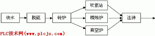 1、前言 梅山炼钢厂于1999年4月份作为起步全连铸钢厂开工一次性成功,创世界冶金工业开工史上同类企业的先进范例(全世界只有梅山炼钢厂和美国的Nucor公司作为起步全连铸钢厂开工一次性成功) ,作为宝钢三大基地普碳钢基地,梅山现可以生产6大类30多个钢种,并且开发出高附加值的钢种,如冷轧用钢、焊瓶钢、管线钢、集装箱板钢等,其中汽车大梁钢、焊瓶钢、集装箱板钢已成为梅山品牌.连铸机有效作业率和台时产量也获得全国第一的荣誉.2003年以前,整个炼钢过程均以贝利公司Infi90作为控制系统,2002年炼钢厂在连铸工艺中新增以SIEMENS PLC为控制系统的2号连铸机,并于2003年2月份投产,设计拉速为2.4m/m,集世界最先进控制技术,在今年生产计划中,将发挥主导作用。炼钢流程如图1所示: