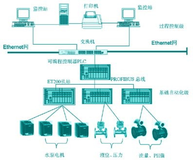 除盐水生产线自动化控制系统设计由两级网络组成,一级是过程控制级,二级是基础控制级。