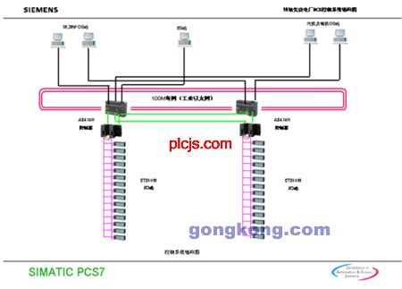 一系统概述 随着经济高速发展,城市化步伐速度也日益加快,城市生活垃圾和工业垃圾处理问题正变得日益突出。每年全国城市垃圾清运量达数亿吨,在各大城市中,垃圾包围城市的现象非常普遍。垃圾已对大气环境及地表和地下水及江河、湖泊等造成了严重污染,生态环境正在遭到严重破坏。因此,结合城市具体情况,对垃圾的处理技术和处理系统及其控制策略等相关问题进行探讨,找出处理效果好、经济上可行的处理方案已成为目前城市垃圾处理问题研究的热点之一。 焚烧处理垃圾的主要优点是垃圾减量最大,无害化比较彻底。如焚烧垃圾发电是现有垃圾处理方法中占地较小,效果较好的方法。另外,建立垃圾焚烧发电厂,可解决垃圾渗沥液引起的污染地下水问题,垃圾焚烧后的废渣进入制砖厂,既减少了对环境的污染,还可产生一定的经济效益。城市生活垃圾、工业垃圾、淤泥和废橡胶轮胎等垃圾焚烧处理技术,利用垃圾焚烧的余热发电,变废为宝,将是今后环保技术的一个重要发展方向。 垃圾焚烧工作原理:垃圾经自动给料单元送入焚烧炉的干燥床干燥,然后送入炉排,炉排在脉冲空气动力装置的推动下抛动垃圾,垃圾与炉排片上的均匀气孔喷出的助燃空气混合燃烧,燃烧产生的热量进入余热锅炉,将锅炉给水加热到压力约4Mpa,温度400℃左右的蒸汽,再推动汽机发电机组发电。由主燃烧室挥发和裂解出来的烟气进入第二、三级燃烧室,进行进一步燃烧,使烟气的温度高达1000℃,烟气在此稍作停留,使有毒烟气迅速分解,后经烟气处理设备和除尘设备处理合格后排入大气。 垃圾焚烧发电厂主要技术参数: 焚化炉锅炉2台,垃圾处理量350t/天,蒸汽量 35t/h,过热汽压4.0Mpa,过热汽温400℃,炉膛温度980℃,给水温度145℃ 。 汽轮机发电机组一套,主蒸汽压力3.9Mpa,主蒸汽温度390℃,发电功率12MW。 二 系统要求 1.提供完善的垃圾焚烧、余热发电DCS控制系统; 2.控制系统采用全冗余配置,保证系统高效、可靠、安全; 3.监控功能友好易用,汉化操作界面; 4.提供方便易学的功能组态,和专用功能块和图库,方便系统功能扩展或修改。 三 系统配置与功能实现 该控制系统采用西门子最先进的过程控制系统PCS7和Profibus-DP现场总线技术,控制系统不仅要承担起全厂的生产过程控制,还要根据垃圾成分的变化快速调整控制程序,以保证焚烧工艺的安全性,使其不再产生二次污染。Profibus-DP总线的通讯速率可达12Mbps,S7-414H双机热备系统和ET200M分布式I/O组成的Profibus-DP总线网构成切换结构,实现故障时的无扰自动切换。上位机采用WinCC V6.0组态软件进行系统组态。该厂的垃圾焚烧工艺引进加拿大RICHWAY公司专利技术,采用四级脉冲炉排,各项指标均达到国际环保要求。 控制系统提供的主要回路控制功能有:炉膛压力控制、干燥炉排温度控制、再循环烟气温度控制、锅炉汽包水位控制、过热蒸汽温度控制、热井水位控制、除氧器水位控制。 ![]() 1.操作员站(OS站)和工程师站(ES站) DCS系统配置4套独立的操作员站(OS站),其中两台焚烧炉配两个OS站,汽机和辅机控制配两个OS站。每套OS均采用成熟、可靠的DELL商用计算机。 OS站为操作员提供图形、列表、操作、历史数据再现等,可在打印机上输出。运行Windows 2000多任务网络操作系统下的PCS7 OS站应用软件。所有OS站均为全能值班配置,图像、操作、数据一致,实现机、炉、电的运行操作。 系统配置1套工程师站(ES站),采用成熟、可靠的DELL商用电脑。 ES站主要完成实时数据库、控制块、图形、趋势、报表等系统数据的生成和下装,完成对系统的详细自诊断和系统数据的列表和后备。运行Windows 2000多任务网络操作系统下的PCS7 ES站应用软件。 |
