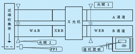 X光机作为行李安检系统的核心设备,在行李安全检查方面起着决定性的作用。X光机通过发射X射线照射,使行李在X光机电脑屏幕上形成图像,安检员根据电脑屏幕上的成像判断行李是否安全,确定行李能否通过安全检查装上飞机。行李输送系统与X光机接口通过屏蔽电缆(4根信号线和1根公共线)连接,两个行李值机柜台共用一台双通道X光机。