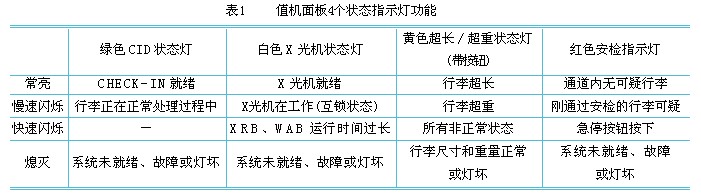 进行相应操作(值机面板4个状态指示灯功能如表1所示)。