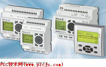 带HMI微型可编程序控制器的发展(转载) 方原柏先生,昆明有色冶金设计研究院教授级高工、昆明仪器仪表学会副理事长兼秘书长。 关键词:PLC Micro-PLC 进展 人机操作界面 可编程序控制器PLC是以微处理器为基础,综合计算机、自动控制和通信技术发展起来的一种通用工业自动控制装置。近年来,微型、小型PLC发展势头特别强劲,尤其是自上世纪90年代中期以来,一批带HMI人机操作界面,又称可编程终端)微型PLC的出现,更令人对这类价格低廉、功能强大的产品刮目相看。 根据国内一市场调研报告,所有最终用户、分销商、生产商、系统集成商和OEM都认为中国PLC市场发展速度超过10%,更多人认为2003年增长应在15%以上;大多数用户认为2003年HMI产品市场增长速度应在20%以上,而主要生产商都获得了12%~35%的业绩增长,可见,HMI发展速度要高于PLC;从2003年底到2004年初,中国PLC市场:在微型(64点I/O及以下)、小型(64~255点I/O)、中型(256~1023点I/O)、大型(多于1024点I/O)PLC中,微型占据40.2%的市场份额。 这些带HMI微型PLC产品,被称为可编程序继电器(日本OMRON公司ZEN)、通用逻辑模块(德国Siemens公司LOGO!)、控制继电器(德国Moeller公司EASY)、智能继电器(日本idec公司FL1)、智能逻辑继电器(日本Pro-face公司PRO-iO)、程控器(日本MITSUBISHI公司ALPHA、FX1N、FX1s)、带操作面板的PLC(以色列Unitronics公司M90/M91)等。这些带HMI微型PLC主要起继电器功能,即它用在I/O点不多而原使用继电器的地方。但又不同于继电器,它是“可编程序”、“通用”、“智能”的。为观察参数状态及编程方便,它还不同于一般微型PLC,带有HMI人机操作界面,因而具有更广泛应用前景。 在PLC控制系统使用过程中,与操作者关系最密切的就是HMI人机操作界面,通过HMI,用户可随时了解、观察并掌握控制系统工作状态;同时为方便用户编程,也常常借用HMI作为编程器使用。因此带HMI微型PLC往往是将PLC、HMI、I/O、扩展器接口、编程器等诸多设备集成为一体的紧凑型设备。 一 带HMI微型PLC产品 1. 德国Siemens公司LOGO! ![]() LOGO!于1996年问世,第四代LOGO!可见图1。最左边为基本型,可见其正面有1个显示器和6个操作键盘,其余4个为扩展模块。基本型本机上有8DI/4DO ,其中2个DI点可作为模拟量输入。无模拟量输入的主机可带4个数字量扩展模块加4个模拟量扩展模块,有模拟量输入的主机可带4个数字量扩展模块加3个模拟量扩展模块,所以最多可有24DI/16DO/8AI(0~10V、0~20mA、Pt100)。LOGO!显示器可显示4×10字符,有3种工作方式:编程模式可进行程序编制,参数设置模式可设置程序中的时间和参数值,运行模式可以显示日期、时间或输入输出状态。 2. 日本和泉(idec, 又称爱德克)公司的FL1 FL1系列有FL1A、FL1B两种型号,FL1A为不可扩展型,有10点数字量I/O的经济型智能继电器,有包括2点模拟量输入在内总共10点或12点I/O的带模拟量型智能继电器。FL1B为可扩展型,本机所带I/O点数为10/16/24(可选),另可带4个扩展模块,最大I/O点数为88。图2中左面为FL1B本机,右面为其扩展模块,比较图1、2,可见两者在显示器尺寸、操作键盘位置和形状都非常相近。 ![]() 3. 德国Moeller公司的EASY、MFD系列产品 ![]() EASY系列有400、500、600、700、800等多种类别产品(见图3),400类别为不可扩展型,主机本身带8DI/4DO,其中部分产品中有两个DI点可作为模拟量输入AI端;500类别为不可扩展型,主机本身带8DI/4DO/2AI;600、700、800等类别为可扩展型,主机本身带多种I/O类型和点数的选型,同时可选用几种方式将I/O点数扩展至300,其中包括采用AS-i、Profibus-DP、CANopen、DeviceNet现场总线方式扩展。图3中左下为EASY500,左上为EASY700,右上为EASY800,右下为最新MFD控制继电器,它带全图形显示功能。 |