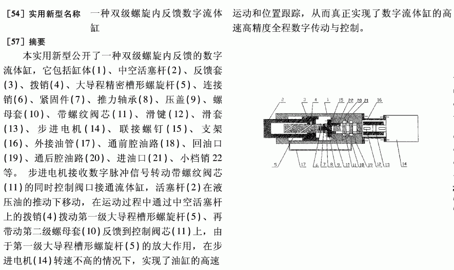 A. 到现在为止,国际上高精度的数字液压控制系统都是一个闭环的电液伺服系统,而我发明的油缸对用户来讲,是一个开环系统,只需要给步进电机发电脉冲,就可以让油缸准确运动.