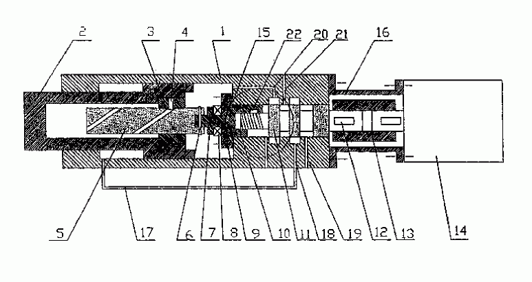 | 关于动作原理要注意下列几个部件的作用:(11)带螺纹阀芯,(12)滑键,(13)滑套。由于螺纹的作用,在步进电机转动时带螺纹阀芯就会移动,因此打开油路,推动中空活塞杆(2),活塞杆的移动通过拨销(4)使大导程精密槽形螺旋杆(5)旋转,带动螺母套(10)旋转将带螺纹阀芯拉回原位而切断油路(通过滑键在滑套中可滑动使带螺纹阀芯既可转动又可滑动),活塞杆定位在新的位置。 | |