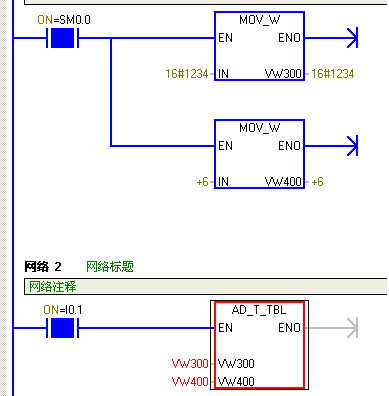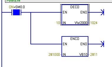 DECO是将VW2000的第十位置零(为十进制的1024),ENCO输入IN最低位为1的是第3位,把3写入VB10(二进制11)。 三、填表指令(ATT) S7-200填表指令(ATT)的使能端(EN)必须使用一个上升沿或下降沿指令(即在下图的I0.1后加一个上升沿或下降沿),若单纯使用一个常开触点,就会出现以下错误: