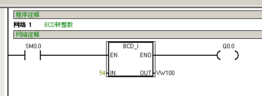 这一点在编程手册中也没有说明,需要注意。其他的表格指令也同样。 四、数据转换指令 使用数据转换指令时,一定要注意数据的范围,数据范围大的转换为数据范围小的发注意不要超过范围。如下图所示为数据的大小及其范围。 (1)BCD码转化为整数(BCD_I) 关于什么是BCD码,请参看《关于BCD码》。 BCD码转化为整数,我是这样理解的:把BCD码的数值看成为十进制数,然后把BCD到整数的转化看成是十进制数到十六进制数的转化。如下图所示,BCD码为54,转化为整数后为36。
