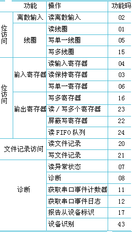 功能码的有效取值范围是1~255,功能码分类分为三类:公用功能码、用户自定义功能码和保留功能码。由客户端发送到服务器的报文中的功能码指示服务器所要执行的操作,一些功能码还带有子功能码,用于执行多步操作。如果服务器接收到的报文正确并执行,由服务器返回的报文中的功能码告诉客户端设备该信息为按照该功能码执行的结果。Modbus网络通信中常用到的是公用功能码,它们在不同公司产品之间的通信中具有统一的定义。表一给出了部分公用功能码的定义。