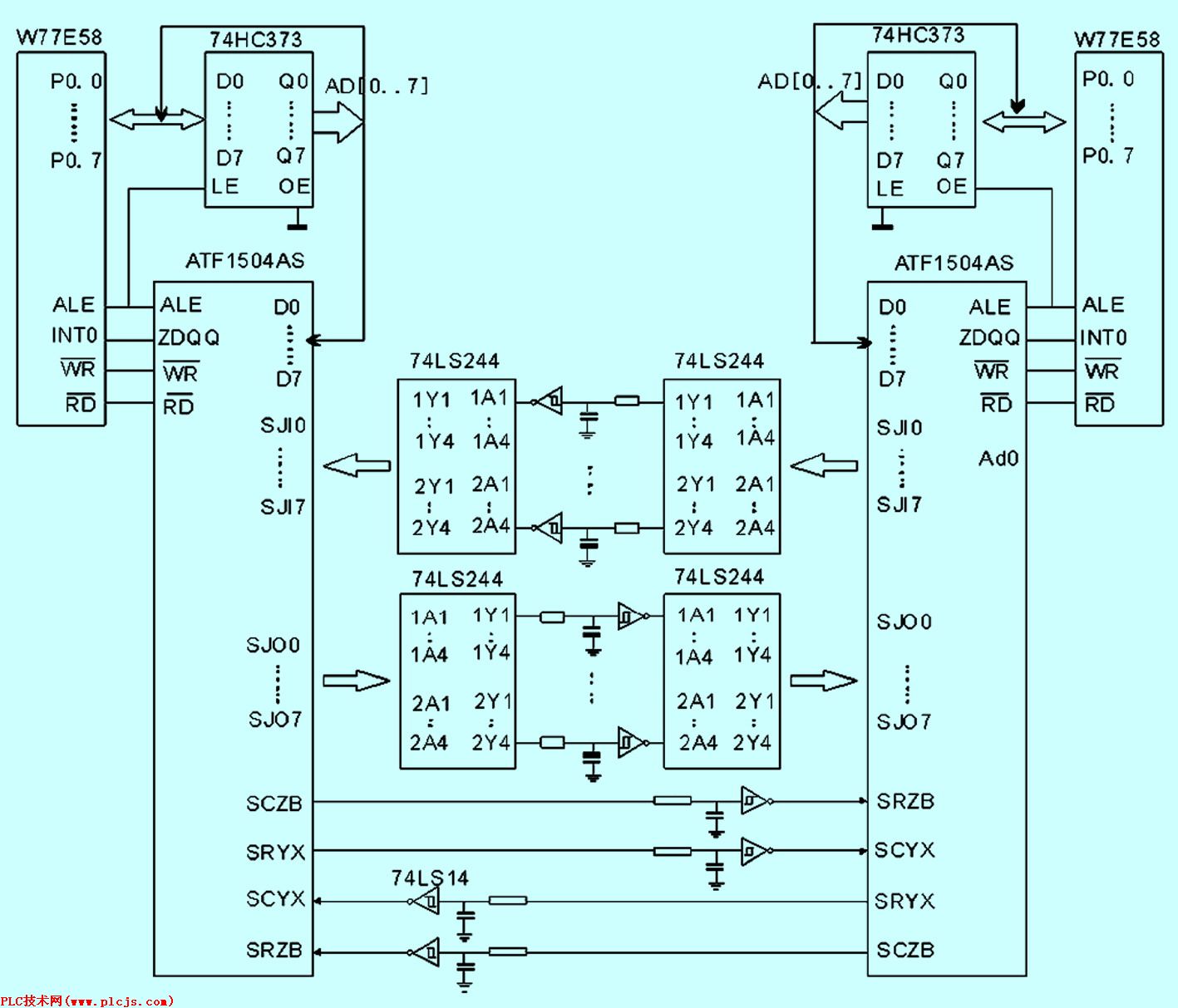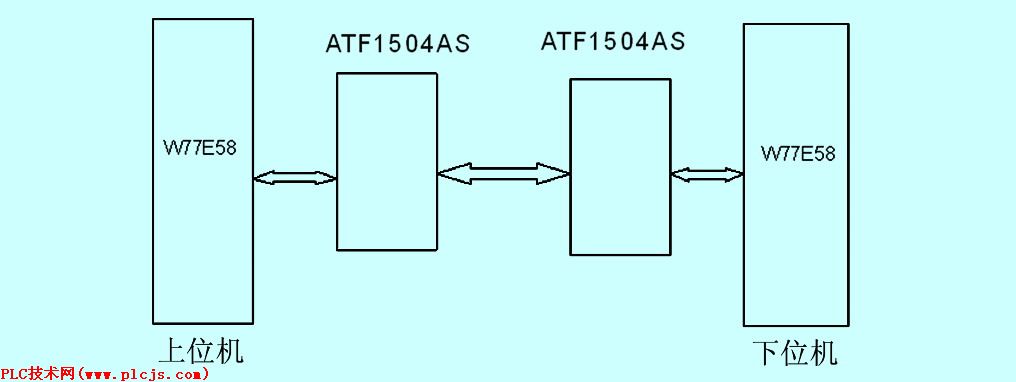 系统的CPU采用W77E58,由ATF1504AS构成通信接口,系统框图如图1所示。