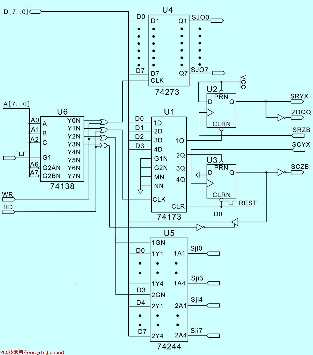 (2) 在输入数据端加斯密特电路(74LS14),将外部传输线上耦合噪声滤除掉。从而提高总线接收的抗干扰性能。