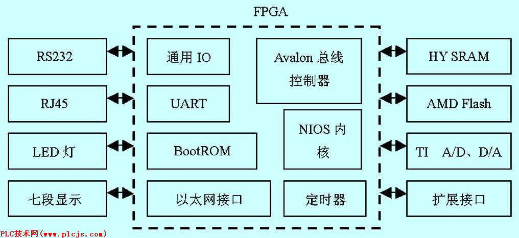 以上这些系统的开发平台并不完全针对工业以太网的应用情况,因为芯片设计公司并不完全熟悉工业以太网的需要。因此在实际应用当中经常出现硬件资源浪费或者资源不够的问题,并且开发系统往往需外接PLD芯片来进行外围器件的逻辑控制,存在接口速率的瓶颈问题。SOPC技术能解决这个难题。