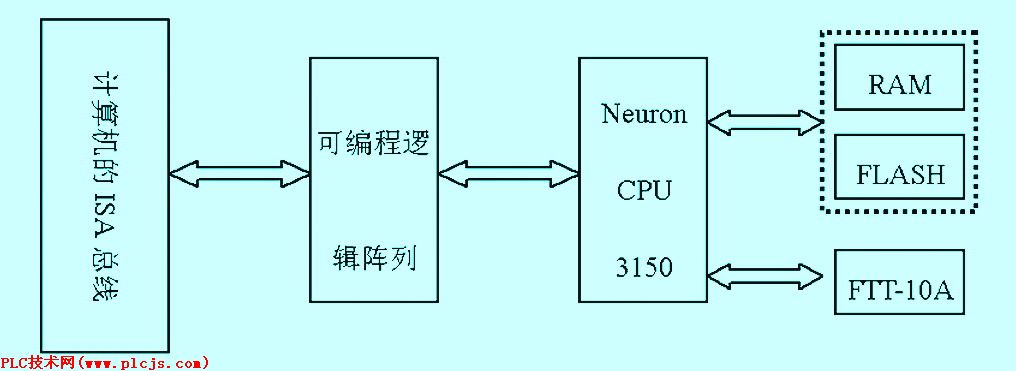 网络接口卡是主计算机与LonWorks网络的接口,使计算机能够完成与LonWorks节点之间的数据交换。在我们设计的智能控制器中,采用专门的嵌入式LonWorks现场总线接口卡作为嵌入式CPU与Lon- Works现场总线网络之间的接口设备。