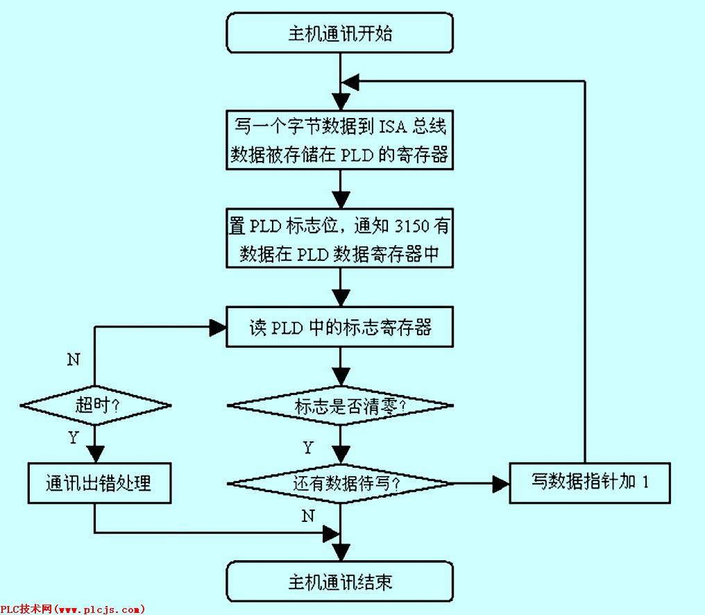 计算机与微控制器之间数据交换接口的应用程序框图如图2、3所示。在程序框图中,主要实现了计算机与微控制器之间读写数据、置标志位和清除标志位的功能。CPLD内部实现了存储数据和标志位的寄存器。