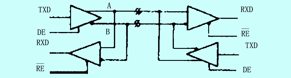 在自动化控制领域,随着分布式控制系统的发展,在工业上的分布式控制系统中,经常需要采用串行通信来达到远程信息交换的目的。目前,用于串行通信的接口标准包括:RS-232、RS-422、RS-423和RS-485。RS-232是最早的串行接口标准,广泛应用在短距离、较低波特率串行通信中。其后发展起来的RS-422、RS-485是平衡传送的电气标准,比起RS-232非平衡的传送方式在电气指标上有了大幅度的提高。RS-485串行接口的电气标准实际上是RS-422的变型,它属于七层OSI(Open System Interconnection,开放系统互连)模型物理层的协议标准。由于性能优异、结构简单、组网容易,RS-485总线标准得到了越来越广泛的应用。其互连方式如图1所示: