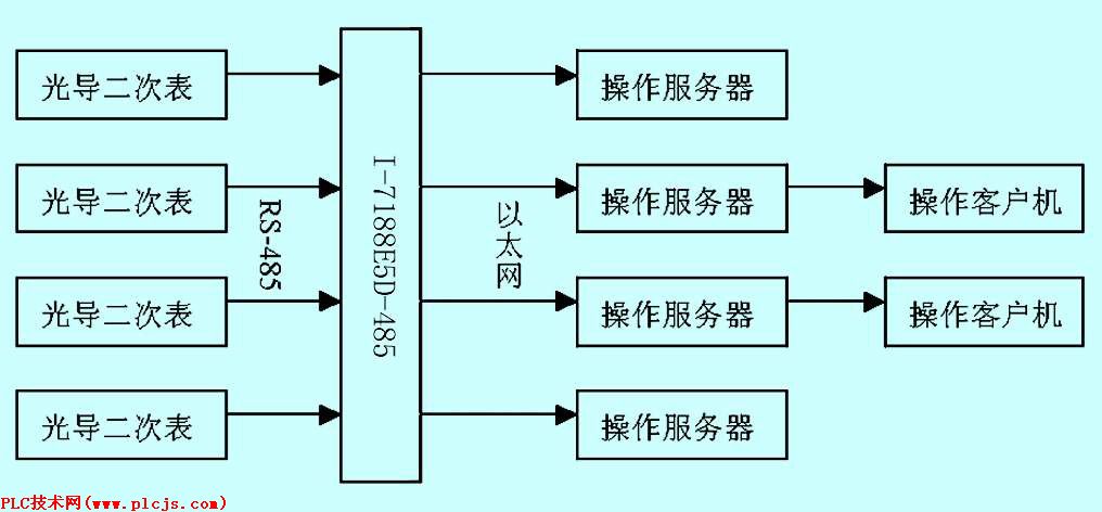某装置有4台光导液位二次表,根据工艺要求,需要把二次表显示改造为DCS监视。光导液位二次表只能输出RS-485的串行信号,监视操作站要求能同时进行监视。因此本系统的技术实质是实现多路串行通讯到多路以太网通讯的转换。