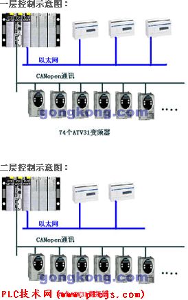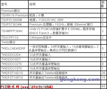 Premium+TWIDO+ATV31方案硬件结构 ![]() 方案原理图 在一层控制和二层控制原理类似,用Twido做常规的IO工艺控制,利用与Premium以太网交换信息,再通过Premium的CANopen通讯控制ATV31变频器(内置CANopen从站口)做速度设定、重置以及读取变频器状态等操作,使用总线通讯,不使用模拟量控制,为客户节约成本。 ![]() 本方案的优点 本控制方案采用了施耐德旗下Modicon Premium自动化平台和Unity软件以及TE下面的ATV31变频器。Premium 发布于 1997,每年大约销售 20,000 个CPU,销售额约 7千7百万欧元,Premium 在 130 国家有销售和支持 ,新32 位结构, 增强性能,57-3634M CPU 包括以太网口为内置口,可以分别与变频器通讯和ERP通讯,功能更强,性能增加,数据和程序容量增加。新设计的超强处理能力,减少周期时间,为程序和数据提供更多的容量,增强了模拟量和过程处理能力。ATV31变频器,结构紧凑,集成EMC滤波器,内置MODBUS和CANopen通讯口,允许使用CANopen通讯方式控制,便于使用。 本控制方案采用了CAN总线通讯:它具有高的位速率(最高1Mb);高抗电磁干扰性;采用短帧,增加了实时性和抗干扰能力。CANopen的通信机制简单,可以降低设备的复杂程度它可以管理 128个 设备 (1 主站 + 127 从站),CANopen协议适合于所有机械的嵌入式网络,是欧洲最重要的网络标准。 Premium CPU和TWIDO使用以太网通讯,并可以直接与一般公司的ERP系统连接。 |