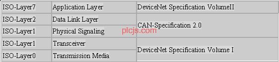 根据ISO的开放系统互联模型OSI,DeviceNet规范除第7层(应用层)外,DeviceNet规范还对一部分第1层(收发器)以及第0层(传输介质)进行了规定,这就为DeviceNet节点的物理连接提供了标准。协议对连接器、电缆类型、电缆长度以及基于通信的显示、操作元素及其相应的封装形式等等都进行了规定。