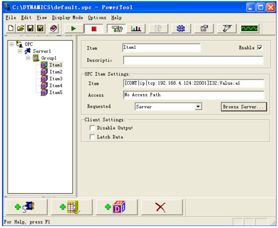 Ifix没有Ultimate的驱动,因此其和OPTO 22设备的连接需要通过OPC或者DDE来进行连接,此文章主要是对OPC连接方法进行说明。 Ultimate IO系统首先要安装其5.0版本,必须要Ultimate IO和OPCServer两个。否则在Opto Browser Configurator中进行OPC数据源配置时将无法彻底完成 Ifix2.6提供OPC Server和OPC Client组件,两个组件用户可任意安装其中的一个,在Ifix2.6的OPC Server组件中包含了OPC Client。安装完毕后启动ifix然后加载OPC Client接口。 1、 Opto22侧配置过程 我们首先进行ioctrl的配置,做好工程方案,然后下载到Ultimate IO中。 启动OPC Server Browser Configurator,然后选择工程方案,此时会在目录树中显示如下图 ![]() 然后再页面的右边击右键,可以把变量和CHART、IO状态添加到数据库中,然后点击Server菜单,Update Server with ……..,然后关闭配置界面。 进行完以上配置后, OptoOPCServery已经开始运行。 以上主要是进行了Ultimate IO的配置,配置完成后需要在Ifix2.6软件上作配置。 2、 Ifix2.6侧配置过程 在安装完毕Ifix2.6自带的OPC Client后,需要在Ifix中的系统配置项进行OPC接口加载。启动Ifix2.6后进入系统配置窗口,如下: ![]() 加载OPC 接口 后,在ifix开发状态下启动OPC Client进行OPC配置。配置画面如下: ![]() 点击连接后进入OPC Client 进行数据配置 ![]() 在OPC Item Settings中的Item项的配置可以通过点击Browse Server按钮进行添加和修改,在添加和修改工作进行前,必须先取消画面上的Enable选项。 ![]() 点击确定后,完成了一个Item的配置,然后根据需要可以配置其它所有需要和ifix2.6交换数据的Item项。 完成所有OPC配置后,在Ifix2.6的实时数据库中进行配置,完成Opto22 Ultimate I/O到Ifix2.6数据库的整个数据链路配置。 在整个OPC配置过程中,用户只需要通过鼠标点击就能完成所有的配置工作,在图形界面的帮助下,用户可以无须了解OPC Item的烦琐定义规范,能极大的提高配置的效率和准确性。 | |
