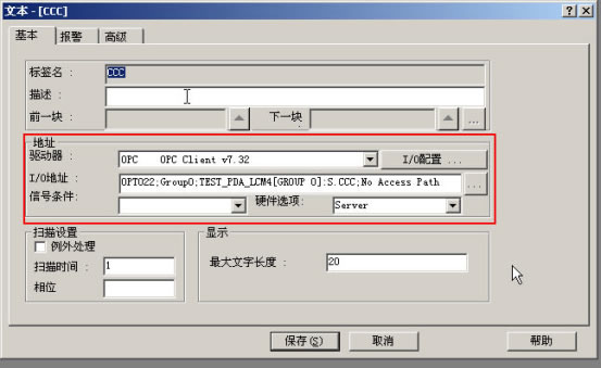 Ifix没有LCM4的驱动,因此其和OPTO 22设备的连接需要通过OPC或者DDE来进行连接,此文章主要是对OPC连接方法进行说明。 Ifix提供OPC Server和OPC Client组件,两个组件用户可任意安装其中的一个,在Ifix的OPC Server组件中包含了OPC Client。安装完毕后启动ifix然后加载OPC Client接口。 1、Opto22侧配置过程 我们首先进行OptoCtrl的配置,做好工程方案,然后下载到LCM4中。 首先在Opto Server Administrator中配置好方案,然后启动Opto Server, 2、Ifix2.6侧配置过程 在安装完毕Ifix自带的OPC Client后,需要在Ifix中的系统配置项进行OPC接口加载。启动Ifix后进入系统配置窗口,如下: ![]() 加载OPC 接口 后,在ifix开发状态下启动OPC Client进行OPC配置。配置画面如下: ![]() 点击连接后进入OPC Client 进行数据配置 ![]() 在OPC Item Settings中的Item项的配置必须按照“控制器[扫描组]:数据类型.变量名”进行添加和修改,在添加和修改工作进行前,必须先取消画面上的Enable选项。 点击确定后,完成了一个Item的配置,然后根据需要可以配置其它所有需要和ifix交换数据的Item项。 完成所有OPC配置后,在Ifix的实时数据库中进行配置,完成Opto22 LCM4到Ifix数据库的整个数据链路配置。 在数据库变量的连接: ![]() IO地址配置的时候注意按照格式:OPC服务器:扫描组:ITEM 然后在上位选择连接变量运行即可。 在整个OPC配置过程中,用户只需要通过鼠标点击就能完成所有的配置工作,能极大的提高配置的效率和准确性。 |