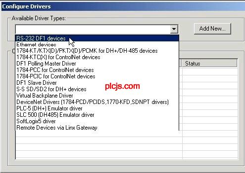 上位机通过opc与ab系列plc通讯(第一步)配置 ab plc 打开rslinx 点>>Communications>>Configure Drivers. ![]() 选择:RS-232 DF1 devices 点:Add New. 点完上面,跳出如下画面, ![]()