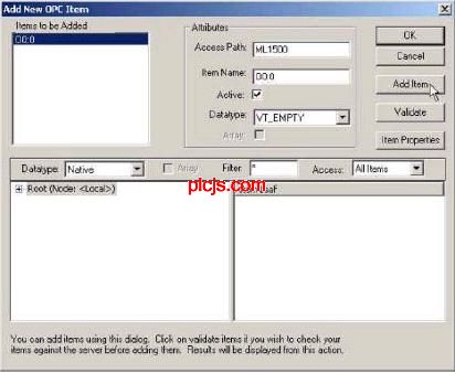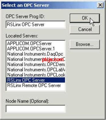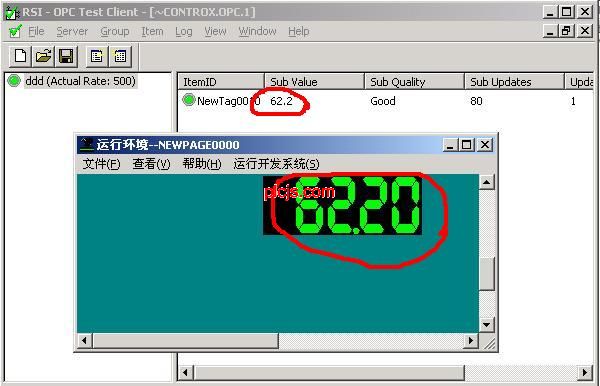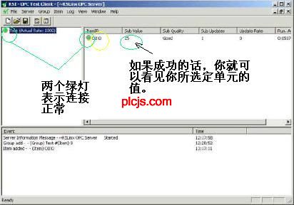 倒数第二张图发错了。 ![]() OPC Test Client 也可以测试其他的opc连接。比如下图,我在开物组态中设置一个变量,通过opc就可在 OPC Test Client 中看见。 ![]() 以太网的OPC和串口的OPC过程是一样的,差别仅仅是在RSLink中建立驱动的时候建立一个以太网驱动就可以了. 以太网跟你其他计算机组网一样,先要有一个HUB(集线器),然后需要給你的plc分配一个ip地址。要给plc分配地址,必须先把你的plc与rslogix先接通,然后通过rslogix给plc进行ip等的配置。 |