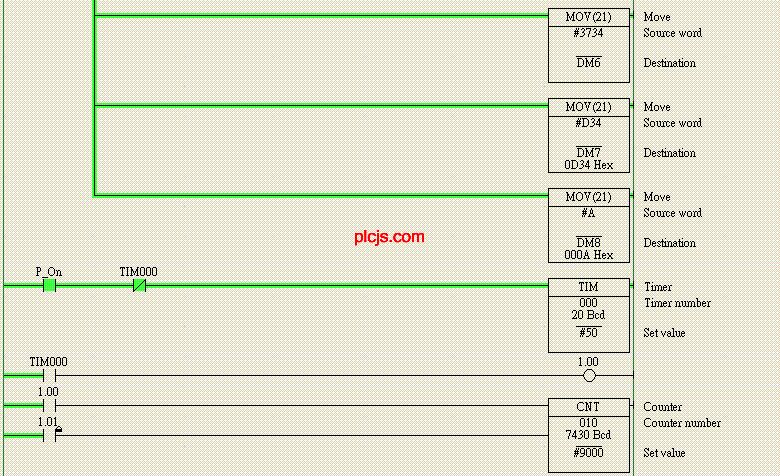 答:要用一个RS-232转换RS-485的转换器連接才行使用时你要注意通讯电缆的連接方法,这种PLC与计算机連接时,9针头2与2連,3与3連,计算机5与PLC9連,参考这种方法連接硬件,連接成功后才能通讯 。使用这种PLC时要注意,它的RS232口旁有一个开关,一定要将开关拔到OFF,拔到ON它将使用默认的通讯格式9600,7,E,2。 问:你所说的通讯适配器我有使用,好像我在帖子上写得比较清楚,通讯适配器为台达IFD8500,另外您所说的电脑与OMRON PLC的通讯电缆我也有,我所说的通讯电缆的接线方法并不是指的电脑和PLC的通讯线。而是PLC和台达通讯适配器的连接线。 问:我要发送一笔数据使台达变频器的运转频率为10Hz,台达变频器符合Modbus协议,通讯地址设置为01,通讯格式设置为9600,7,E,1,ASCII,运转频率由RS-485控制 答:omron的PLC的通讯方式是RS-232,台达的变频器可能是RS-485,台达的IFD8500是否有转换功能(一端是接232,另一可接485)。如果没有你就不能用。你可以买一个这的转换器,200块左右我买过。买回来的转换器也不能直接插到PLC上,因为转换器的发送、接收、地线是2、3、5三针(大部分是这样,可参考说明书),OMRON CPM2A发送、接收、地线是2、3、9,所以你要用接头把它们接起来。发送-接收,地线-地线。这就是我上次说让你注意OMRON PLC和计算机連接时的接线方法的意思。如果你的IFD8500有转换这个功能,我想你也要做这一根转换线的,因为台达的引脚定义和OMRON不一样。、其它的细节就和上面的几位同仁说的一样,波特率,指令的运用,变频器的设定都要注意。用这个转换器的原因是RS232发送数据信号电平是5v的,RS485是15v的。’