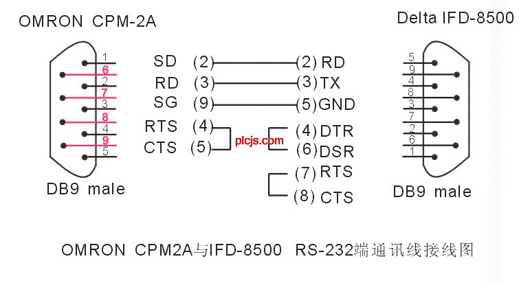 问:台达的IFD-8500当然可以将RS-232信号转换成RS-485信号,我在前面也有说明,现将OMRON CPM2A与台达IFD-8500通讯适配器的接线图画出来供你参看,请你帮忙确认一下有什么地方接错了。