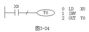 FX系列PLC有基本逻辑指令20或27条、步进指令2条、功能指令100多条(不同系列有所不同)。本节以FX2N为例,介绍其基本逻辑指令和步进指令及其应用。 FX2N的共有27条基本逻辑指令,其中包含了有些子系列PLC的20条基本逻辑指令。 逻辑反、空操作与结束指令(INV/NOP/END) (1)INV(反指令) 执行该指令后将原来的运算结果取反。反指令的使用如图1所示,如果X0断开,则Y0为ON,否则Y0为OFF。使用时应注意INV不能象指令表的LD、LDI、LDP、LDF那样与母线连接,也不能象指令表中的OR、ORI、ORP、ORF指令那样单独使用。