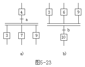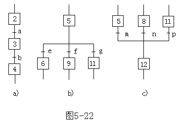 | (1)单序列 单序列由一系列相继激活的步组成,每一步的后面仅接有一个转换,每一个转换的后面只有一个步,如图5-22a所示。