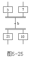 | 1、功能图表转换实现的基本规则 (1)转换实现的条件 在功能表图中,步的活动状态的进展是由转换的实现来完成的。转换实现必须同时满足两个条件: 1)该转换所有的前级步都是活动步; 2)相应的转换条件得到满足。 如果转换的前级步或后续步不止一个,转换的实现称为同步实现,如图5-25所示。