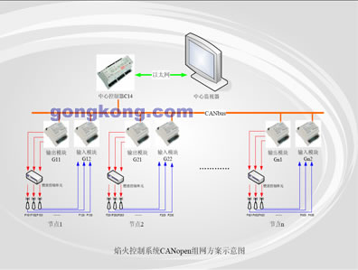 1.总体描述 ![]() 该控制系统的性能要求为: 程序部分: ♦ 可逐点扫描式燃放,也可同时燃放N 支 ♦ 可分多段编写程序.(6-8 段)程序运行中可手控停止运行、恢复运行、跳跃运行每段程序和修改程序,也可按序不间断运行程序 ♦ 主控作为从属时,接口为RS232 电路部分 ♦ 主控要有8 个输出端口,可分别与模块连接,每个模块之间也可以串接 ♦ 二 每个模块上有10 个输出端口,其中9 个输出端口电压大于或等于12V,电流2A-6A,一个输出端 口为电压220V,电流2A-6A ♦ 三 每个模块输出端口为4 芯卡侬口或其它4 芯接口 设计限制 ♦ 该控制器的设计带外壳,接线必须方便,控制器本体和电量变送器为分离安装。 ♦ 开发出的控制器编程和二次开发容易 2. 技术说明 2.1 核心部件 ♦ CANopen 组网模式 中心控制室PLC-C14 特性参数 基本配置: 以太网:1 个10Base-T,RJ45 CAN:2 个高速CAN-bus 接口,CiA 标准DS102, 带隔离 开关量:带隔离的24 路开关量输入,16 路开关量输出 + 4 路继电器输出 模拟量:4 路模拟量输入,2 路模拟量输出 其它:2 路PWM 输出,3 路高速计数器 串口:3 个RS232,RJ12 接口(用于更新固件)、1 个3 线RS232、1 个9 线RS232 CANopen PLC-C14 支持CANopen 通讯协议,使得CANopen PLC-C14 可以和所有支持 CANopen 协议的设备构成开放灵活的分布式控制系统。 编程: CANopen PLC-C14 采用 IEC 61131-3 的语言标准进行编程,也有支持C 代码编程的型号,强大的集成开发环境OpenPCS 大大缩短了开发周期,OpenPCS 自带PLC 模拟器。 ·节点模块采用sysWORXX 系列I/O 模块 ·高速远程I/O 模块,I/O 可远程访问,就像访问本地I/O 一样简便,可跨网段访问 ·体积小巧的高密度I/O,I/O 可集中布置,也可以分步布置。 ·无需PLC 就可以单独配置和操作。 ·具有非易失性内存保存配置数据,重新启动后无需重新配置。 ·内置看门狗,自我诊断,I/O 和温度监控保证设备的稳定运行。 ·可以通过CANopen 协议进行远程设置 ·完全兼容CANopen 协议的标准设备,易于集成,各厂家产品可以共同构建开放灵活的分布式控制系统。 ·所有的I/O 状态都可以通过LED 显示 ·CAN-bus 和I/O(可选)都具有隔离 ·可拔插弹簧端子 ·操作温度:0-70 C 湿度: 90% 不结露 ·导轨安装的封装形式 |
