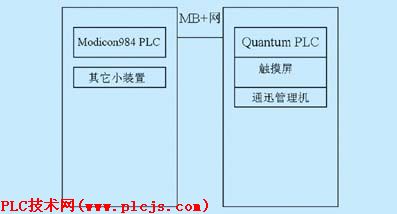 扩展一面屏,增加开关量输入和输出点数,PLC仍采用Modicon984,和上位机通信仍需采用MB+方式。由于仅仅是对原有系统进行扩充,增加了相关的点数,整个系统的功能特点以及可靠性等并没有过提高,这种方案改造的意义不大。