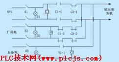在供电配置上是采用双路自动切换电路,一路UPS、一路厂用电,在正常时K1、K2是合上去的,工作电源由UPS供给,如图1所示。这种设计的问题在于把所有的负载加在一个UPS上,当UPS电源故障(CI接触器失电时)时刻,才切换至厂用电,这种设计存在风险集中问题。