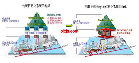 QJ71MES96模块功能和特点: 1. 无需数据通讯的PLC程序、无需编程可以使用SQL直接连接MES数据库。 2. 可以设置读写数据库的触发条件(数值监控,时间和周期等)、包含计算功能。 3. 数据库缓存功能: 当通讯回路和服务器出错时将传输的数据临时存放到CF卡中当故障修复以后, 通过自动传输防止数据的丢失。 4. 触发缓存功能: 当传输的要求超过了系统或者网络的带宽,MES接口将信息缓存入内存。时间同步确保了信息系统数据的正确性。 5. 时间同步功能:可以和时间标记一同传输数据(SNTP同步/PLC同步) 6. 可以连接的数据库: Oracle 9i Standard Edition、 Oracle 10g Standard Edition 、 Microsoft SQL、 Server 2000 Standard Edition、Access 7. 支持数据库存取的指令: Insert、Update、Select 8. 程序执行功能: 在服务器计算机上执行一项工作的第一个动作以前和最后一个动作以后执行程序 MES模块应用情况: 三菱电机名古屋制作所伺服电机组装工厂通过引入MES接口,使所有数据自动采集、管理,从而防止了不合格品的流出,使人工采集数据的成本为零!通过测试装置进行实时的状态检测来预防不良的发生通过管理项目的X-R管理可及时通知事先报警(MAIL)。通过密集的数据采集甚至可以追溯到上流工序,采取对策。 新产品开发的背景和目的: 信息管理控治系统和FA控制系统由于其采用的信息形式不同,没有可以直接交换的层次,所以难以直接进行连接。传统信息控制系统都是采用计算机作为中间层,负责采集现场设备的信息,然后向信息层发送数据,用于各种生产管理。为了实现从设备中直接采集信息,节省数据采集系统的设置和运行成本,三菱电机最新开发了安装于Q系列PLC的MES(制造执行系统的简称)模块:QJ71MES96。使用QJ71MES96模块可以很容易构建e-F@ctory(信息可视化)控制系统,达到生产现场与MES之间低成本简单连接并且实现无PC, 无程序的环境。 使用Q系列MES模块的好处: § 省去中间计算机,节省开支! § 设计、工程费用大幅度减少! § 设备维护费用减少! § 无计算机连接可以实现高可靠性和安全运转! 传统信息化系统和使用MES模块的e-F@ctory信息化系统的构成如下图所示 ![]() |