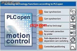 所有与运动控制有关的功能均是用符合PLCopen规范(任务组运动控制,Task Force Motion Control)的功能块(FB),放于功能库中,供用户直接调用。如:电子齿轮,电子凸轮盘,印刷标记同步控制,凸轮开关,定位控制,等等。