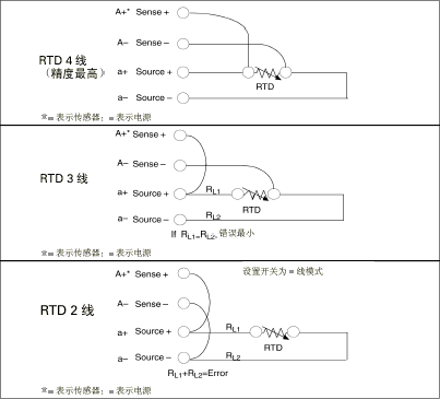 RTD与传感器的接线,4线,3线,2线。