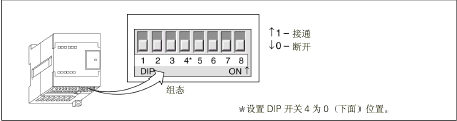 | DIP组态开关位于模块的下部,如图28所示。为使DIP开关设置起作用,用户需要给PLC和/或用户24V电源断电再通电。 | |