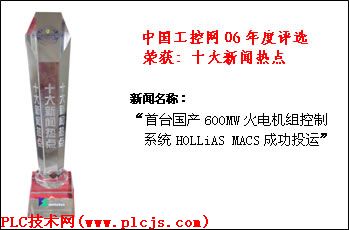 在热点新闻中,“首台国产600MW火电机组控制系统HOLLiAS MACS成功投运”得到用户和专家用户组的一致肯定。600MW火电机组控制系统进入商业运营,这不仅标志着我国电站设备制造和电力工业装备实现国产自动化控制技术的水平迈上了一个新的台阶,标志着我国自动化控制技术已达到国际一流水平!同时入围热点新闻还包括:和利时公司在上海举行的“和利时LK大型PLC新品发布会”,得票名列前茅。由于评选规则规定:同一条信息同时获选“热点新闻”及“年度创新产品”奖项,仅保留一项奖项。遗憾未能列入“十大热点新闻”,只在“年度创新产品”奖中有所体现。