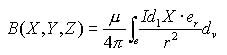 空间中任一点的磁感应强度B,服从毕奥-萨伐定律,见下式: