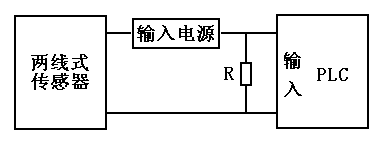 图6-8 PLC与两线式传感器的连接 旁路电阻R的估算公式如下: